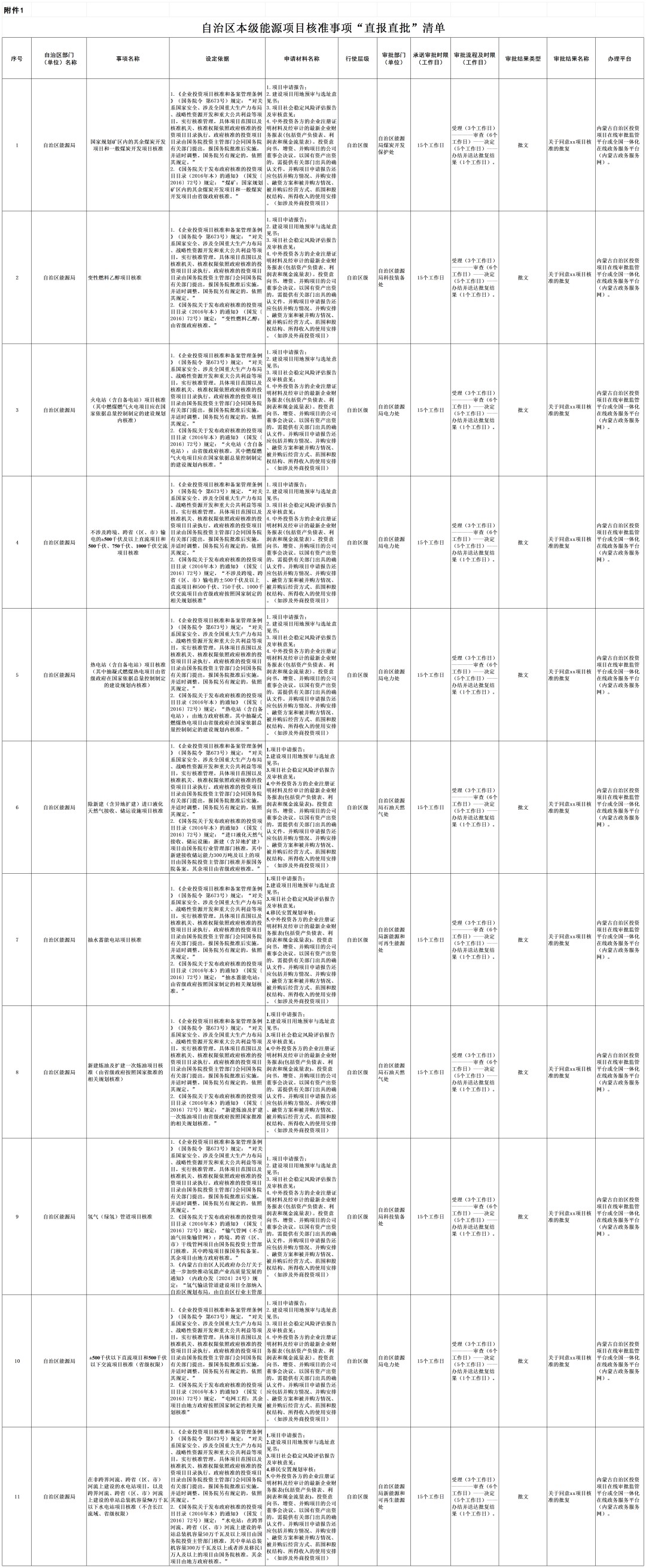 1.自治区本级能源项目核准事项“直报直批”清单
