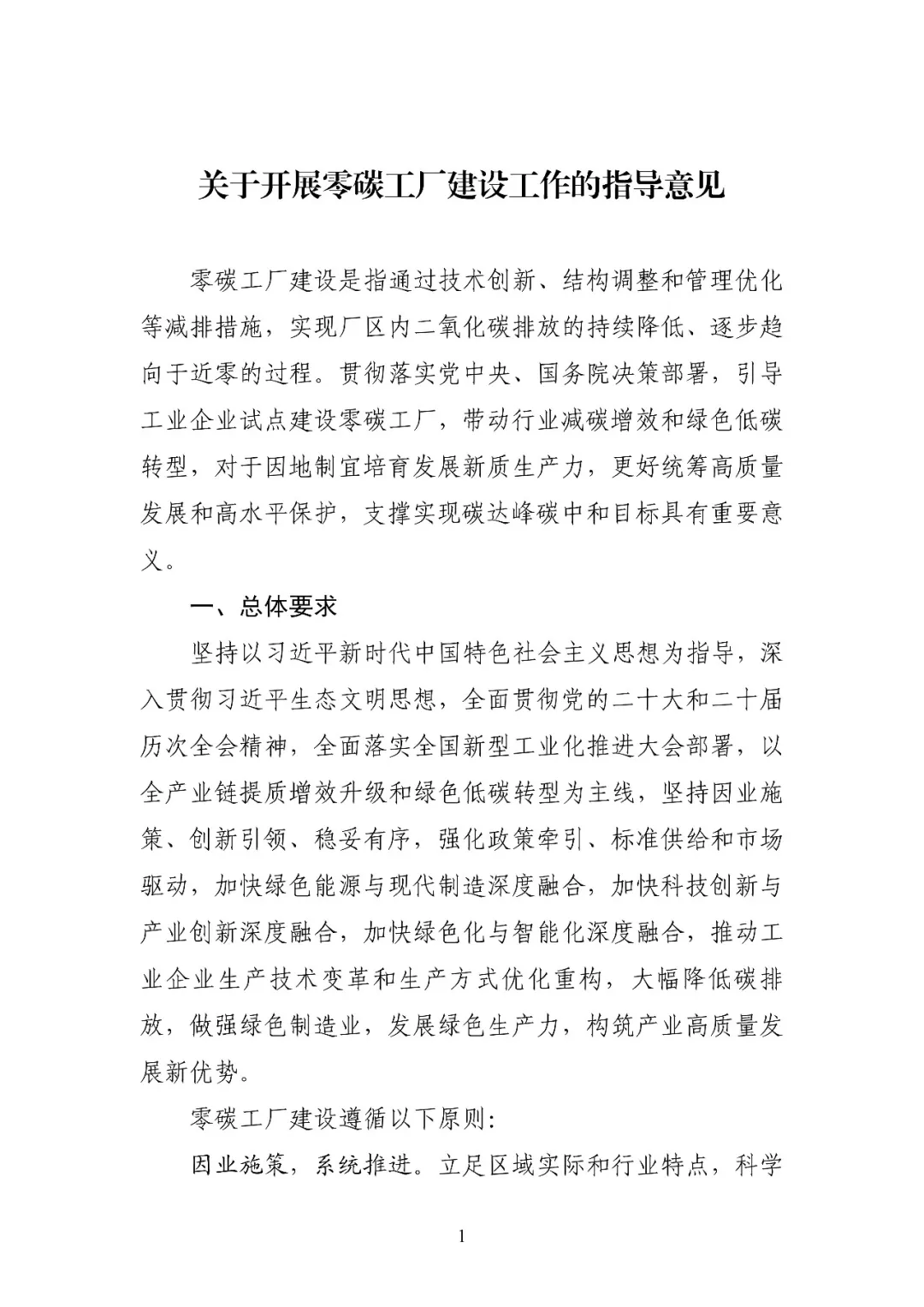 为坚持以习近平新时代中国特色社会主义思想为指导,深入贯彻习近平生态文明思想,全面贯彻党的二十大和二十届历次全会精神,落实国务院办公厅《制造业绿色低碳发展行动方案(2025—2027年)》,深挖工业和信息化领域节能降碳潜力,带动重点行业领域减碳增效和绿色低碳转型,培育发展新质生产力,工业和信息化部、国家发展改革委、生态环境部、国务院国资委、国家能源局共同研究制定了《关于开展零碳工厂建设工作的指导意见》。现印发给你们,请结合实际,认真贯彻落实。