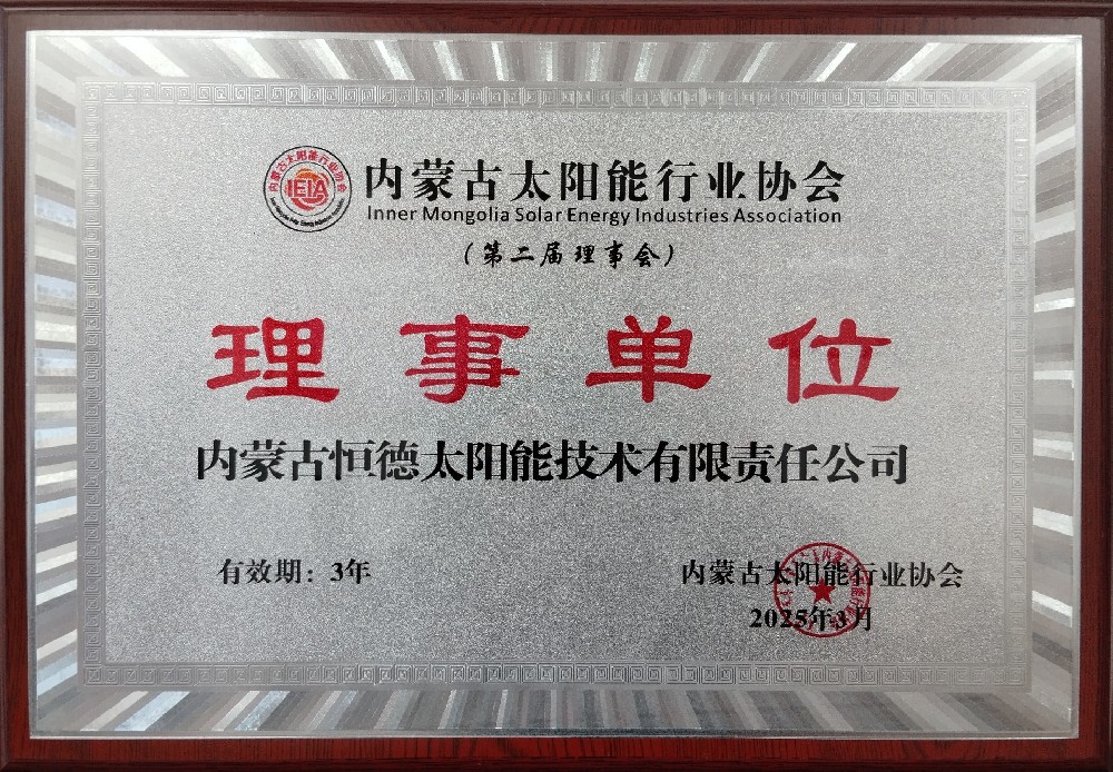 内蒙古恒德太阳能技术有限责任公司于2025年再次续费,为我协会的理事单位。