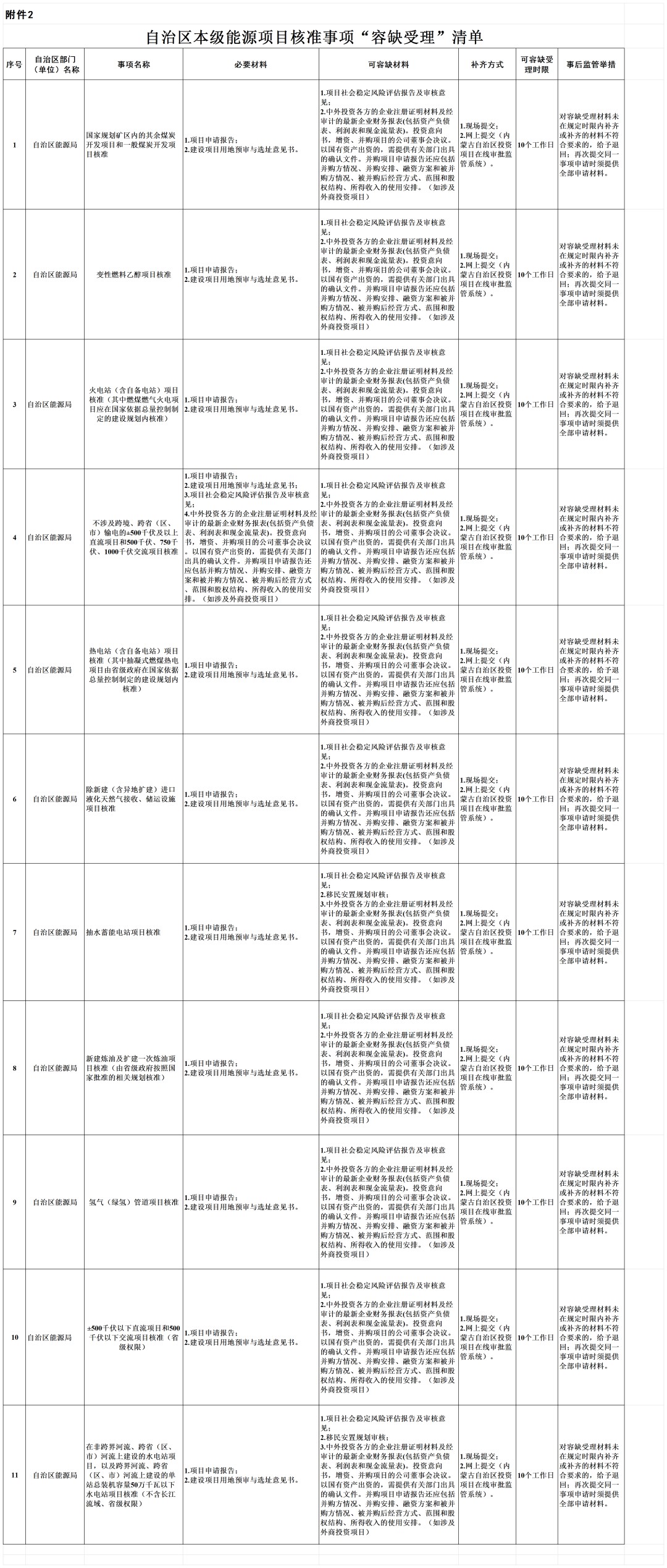 2.自治区本级能源项目核准事项“容缺受理”清单